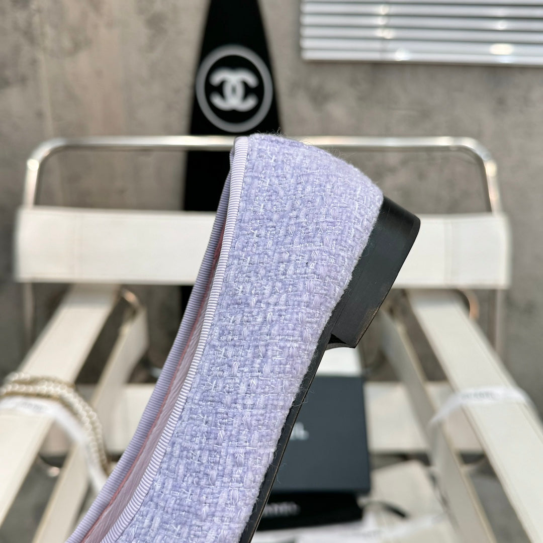 ballet flat light violet tweed black patent calfskin