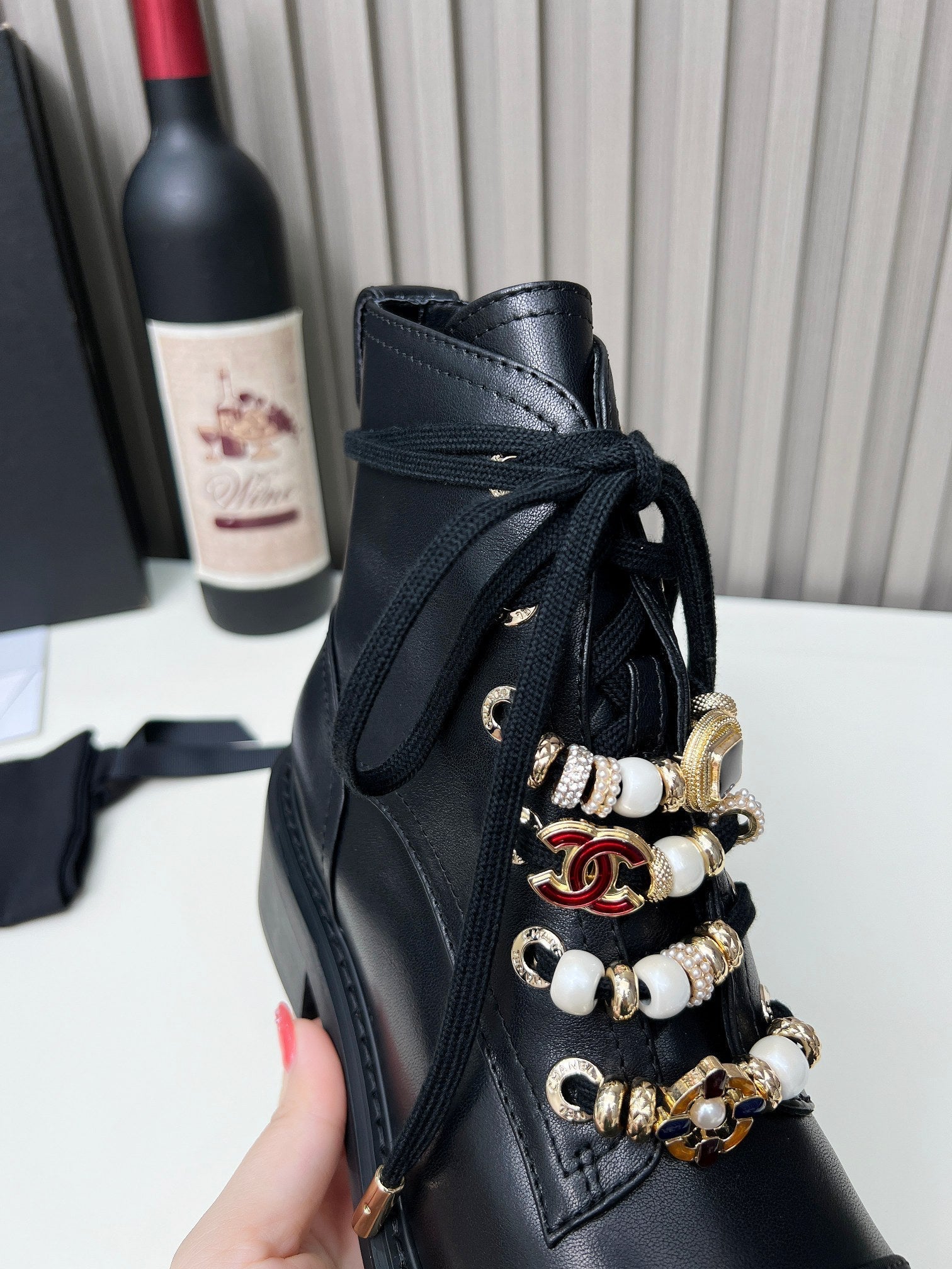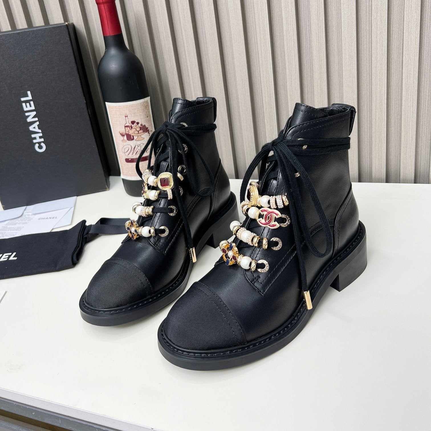 CC Combat Boots 50mm Black Calfskin And Lycra Fabric 944548