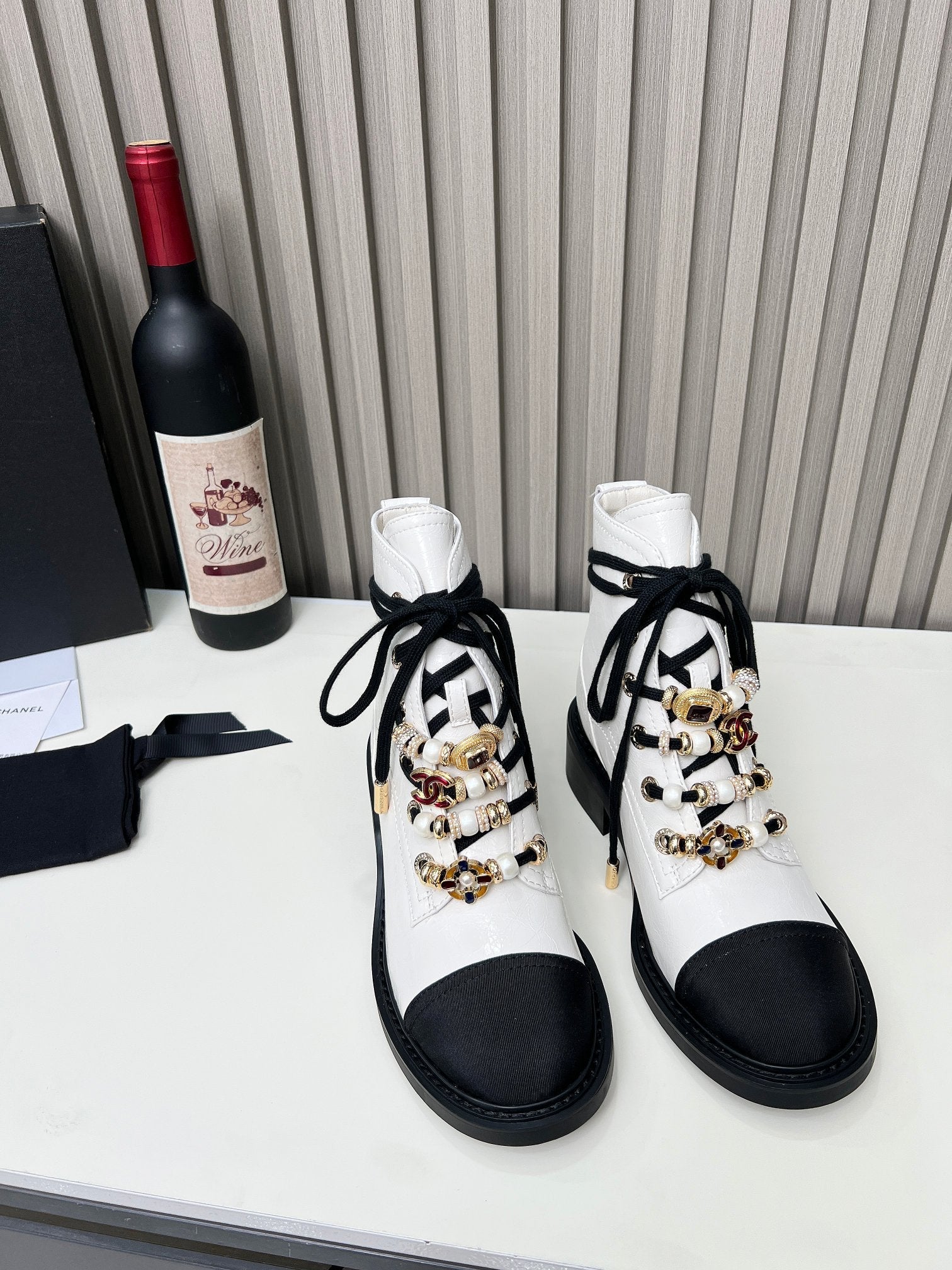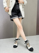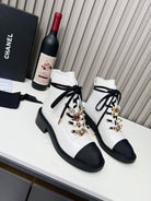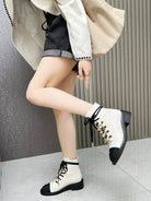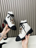 CC Combat Boots 50mm White Black Calfskin And Lycra Fabric 944550