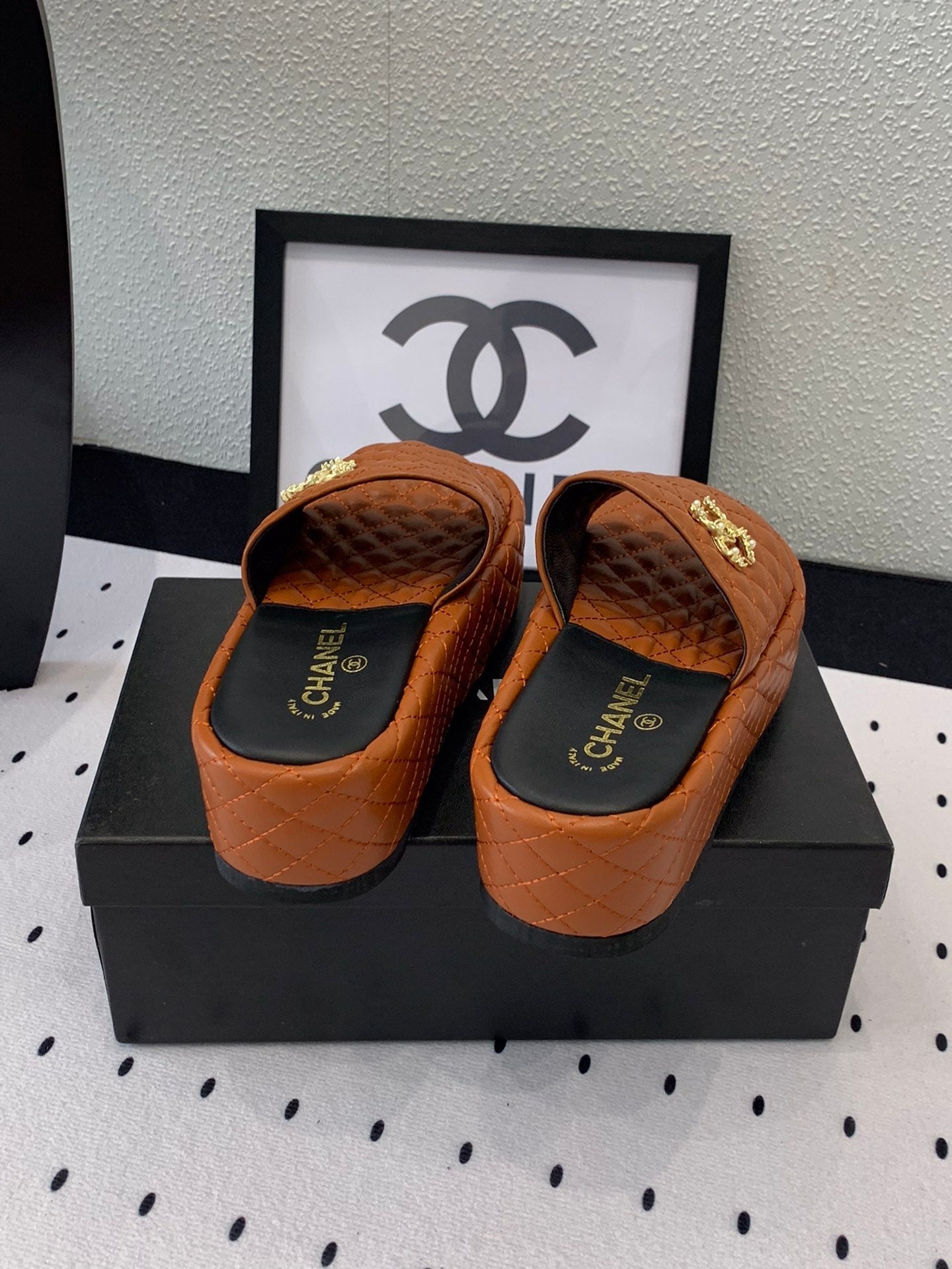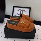 cc dark brown quilted calfskin platform