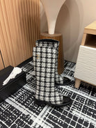 CC High Boots In White Mix Black Wool Tweed And Lambskin