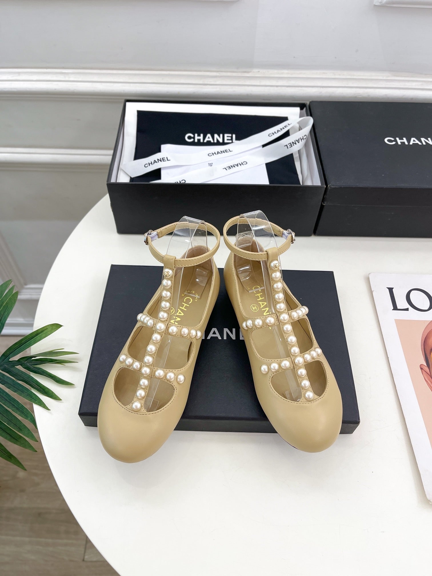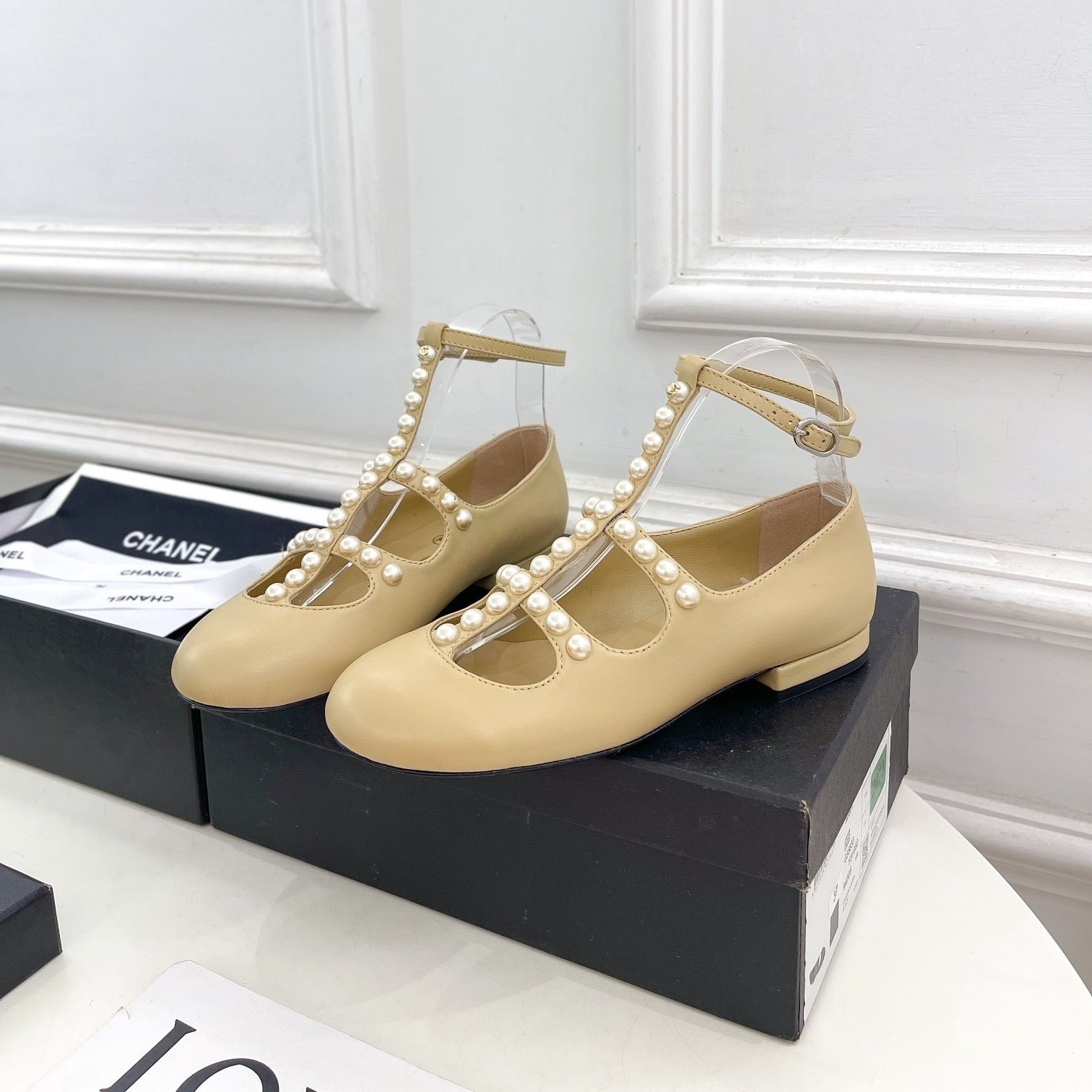 CC Mary Jane 10mm In Buff Yellow With Small Pearls Lambskin 948762