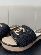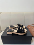 cc mule sandal 45 black tweed beige calfskin