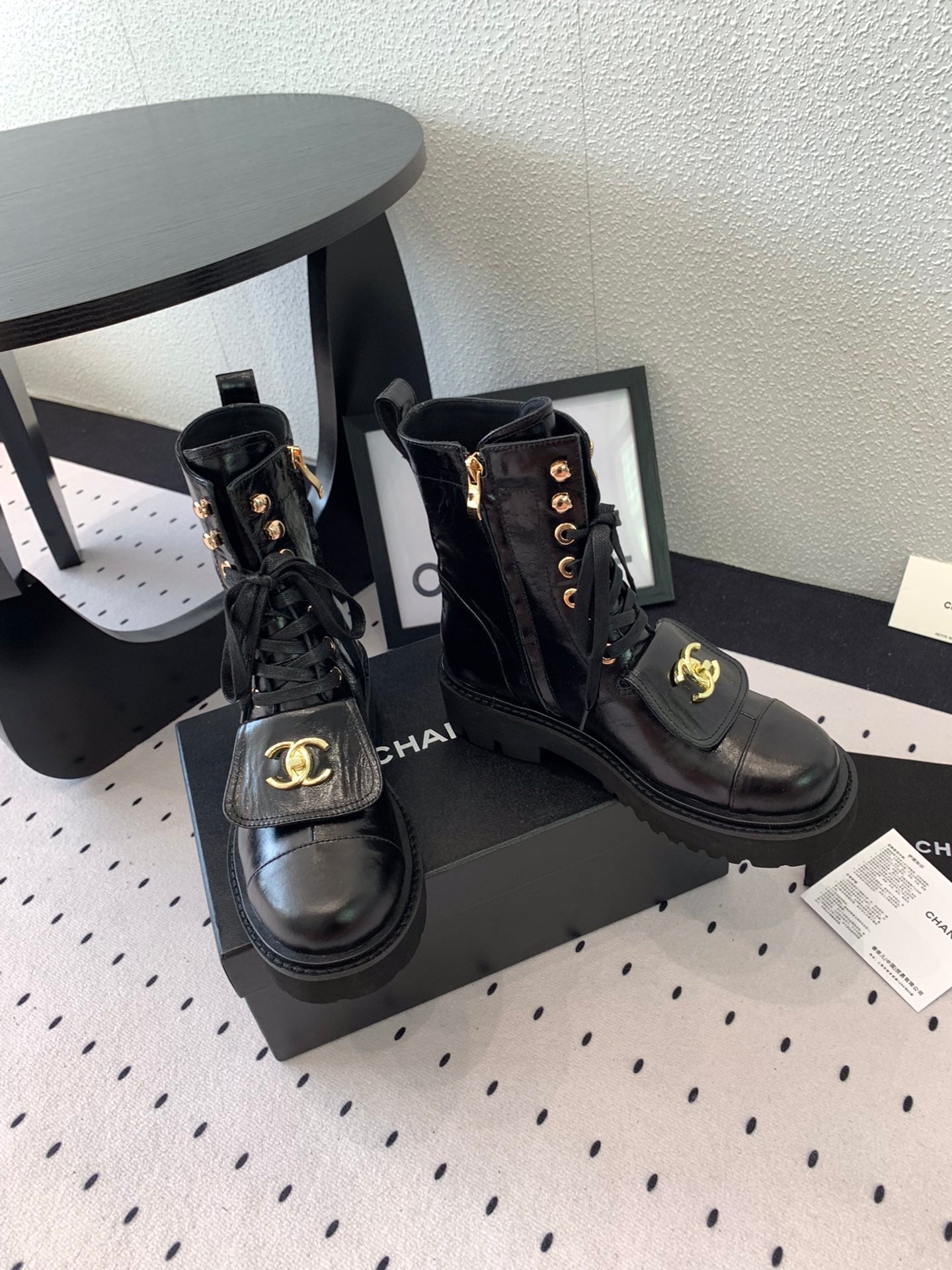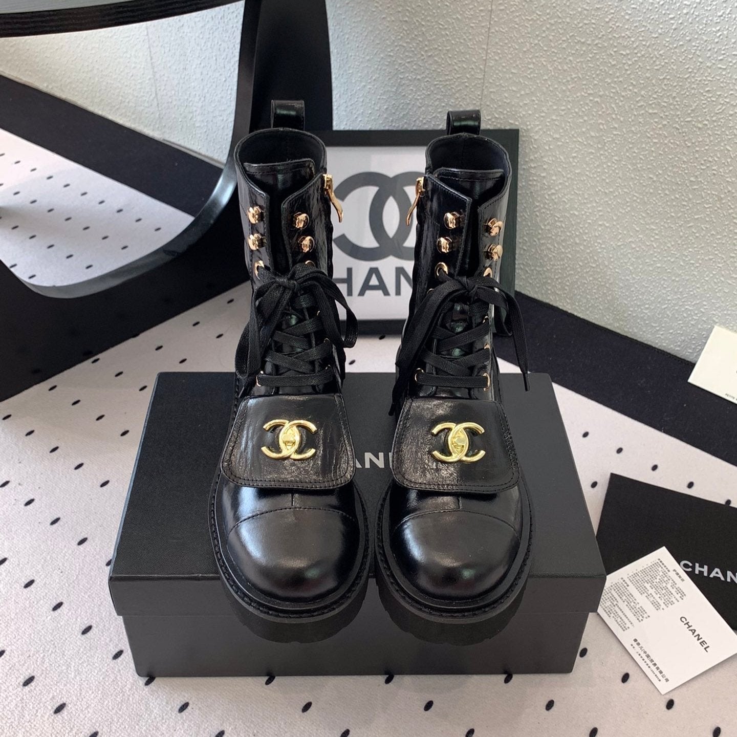 CC Short Boots In Black Logo Print Lambskin 938057