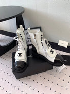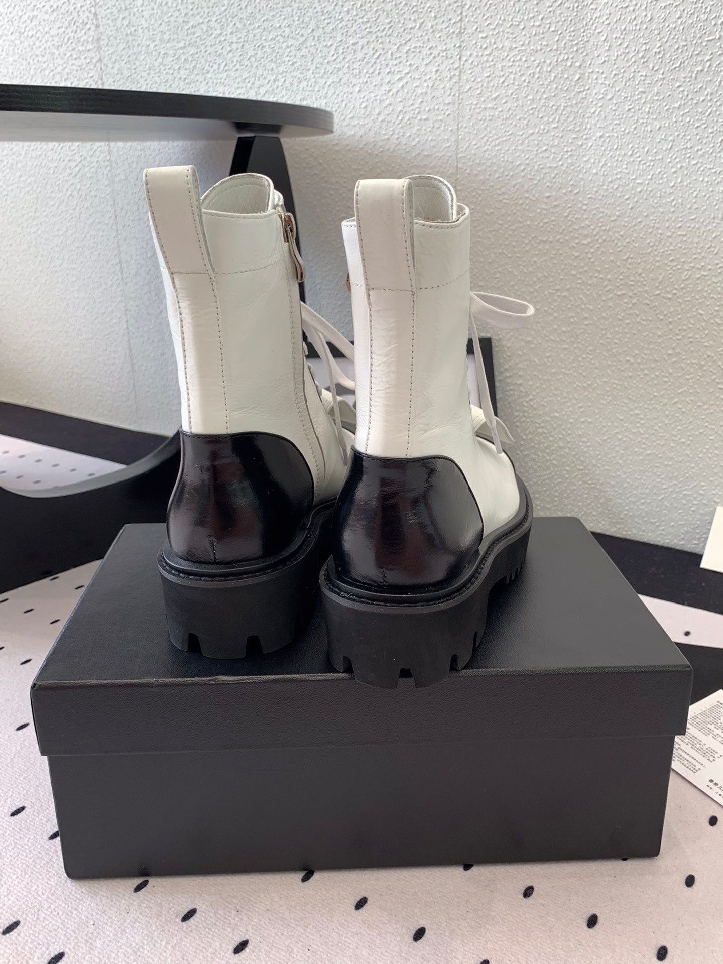 CC Short Boots In White Mix Black Logo Print Lambskin 938060