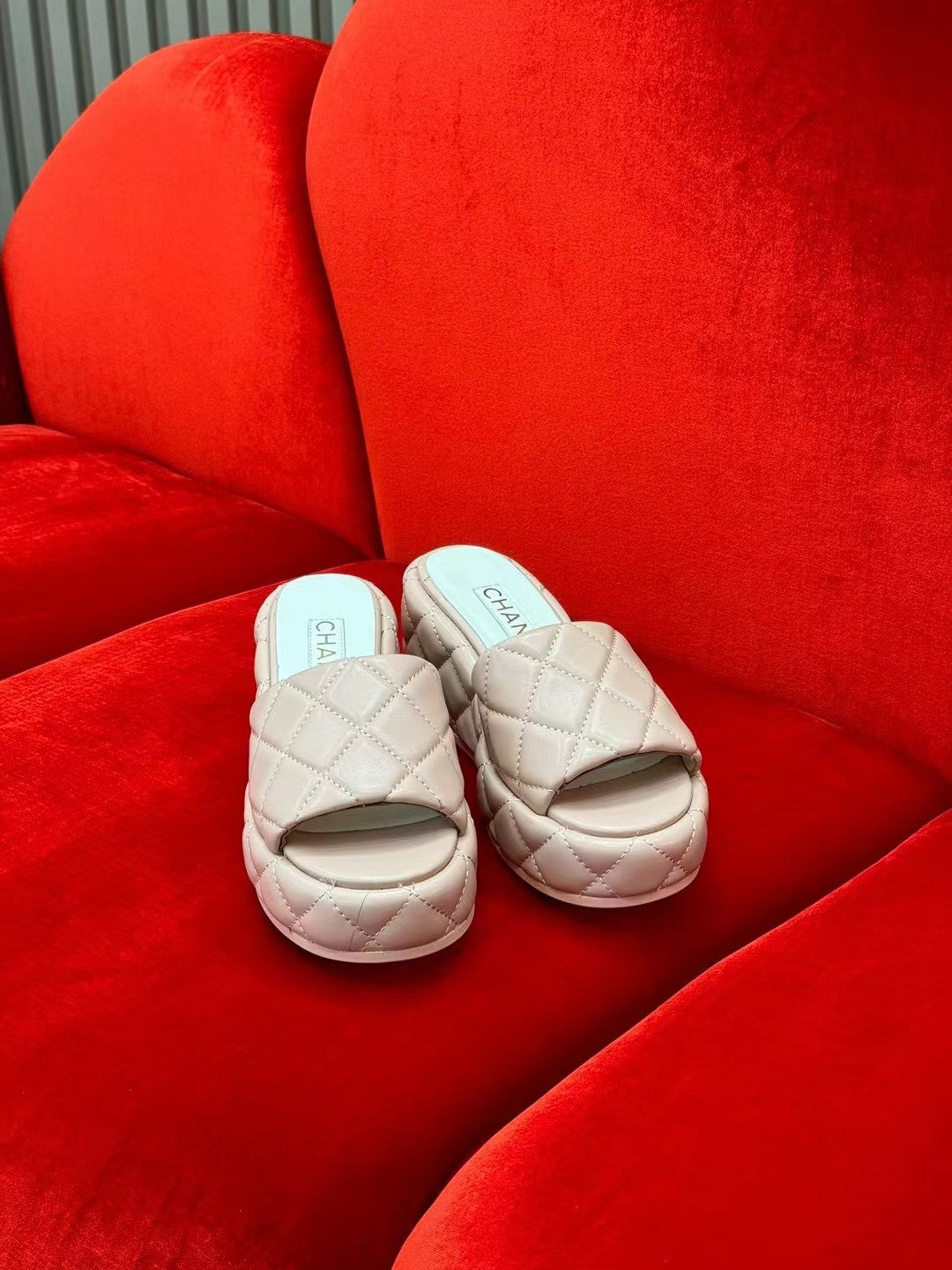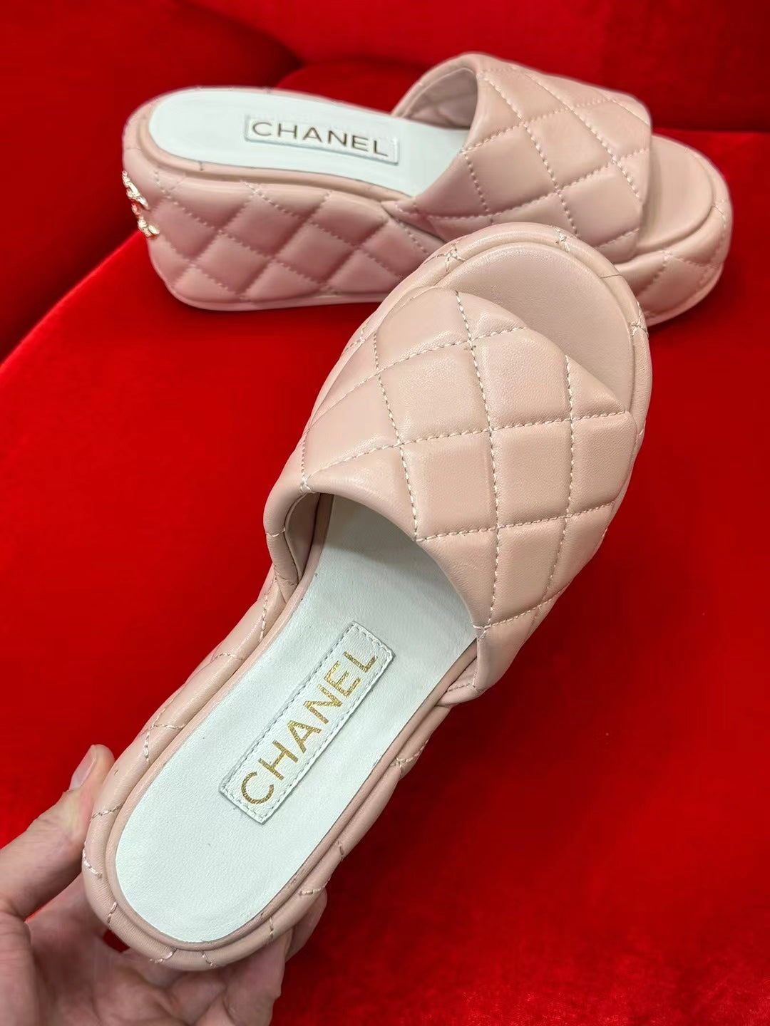 CC WEDGE HEEL BEIGE CREAM LAMBSKIN