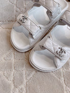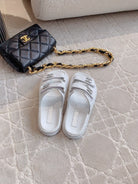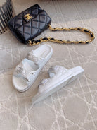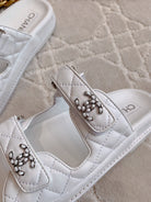 dad sandal mule white lambskin silver buckle