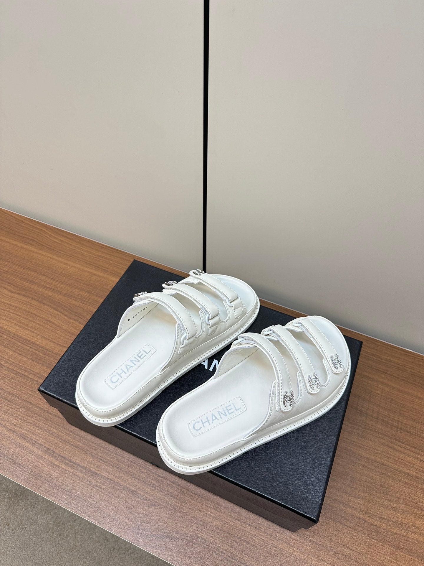 dad sandals white triple strap lambskin mules