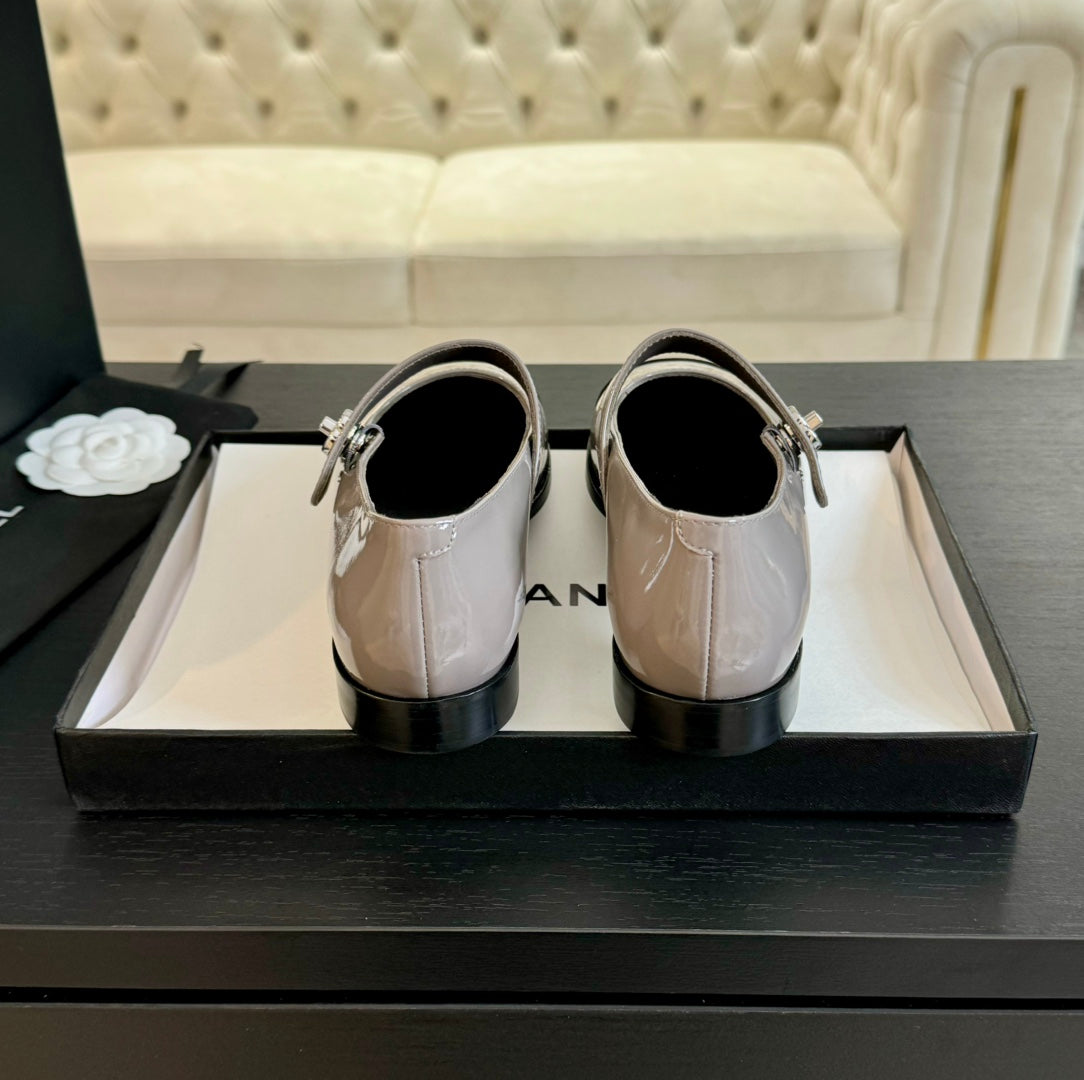 mary jane flat Gray patent calfskin