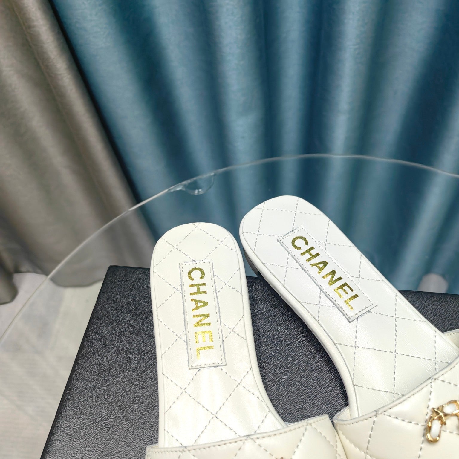 mule sandal quilted white calfskin mop