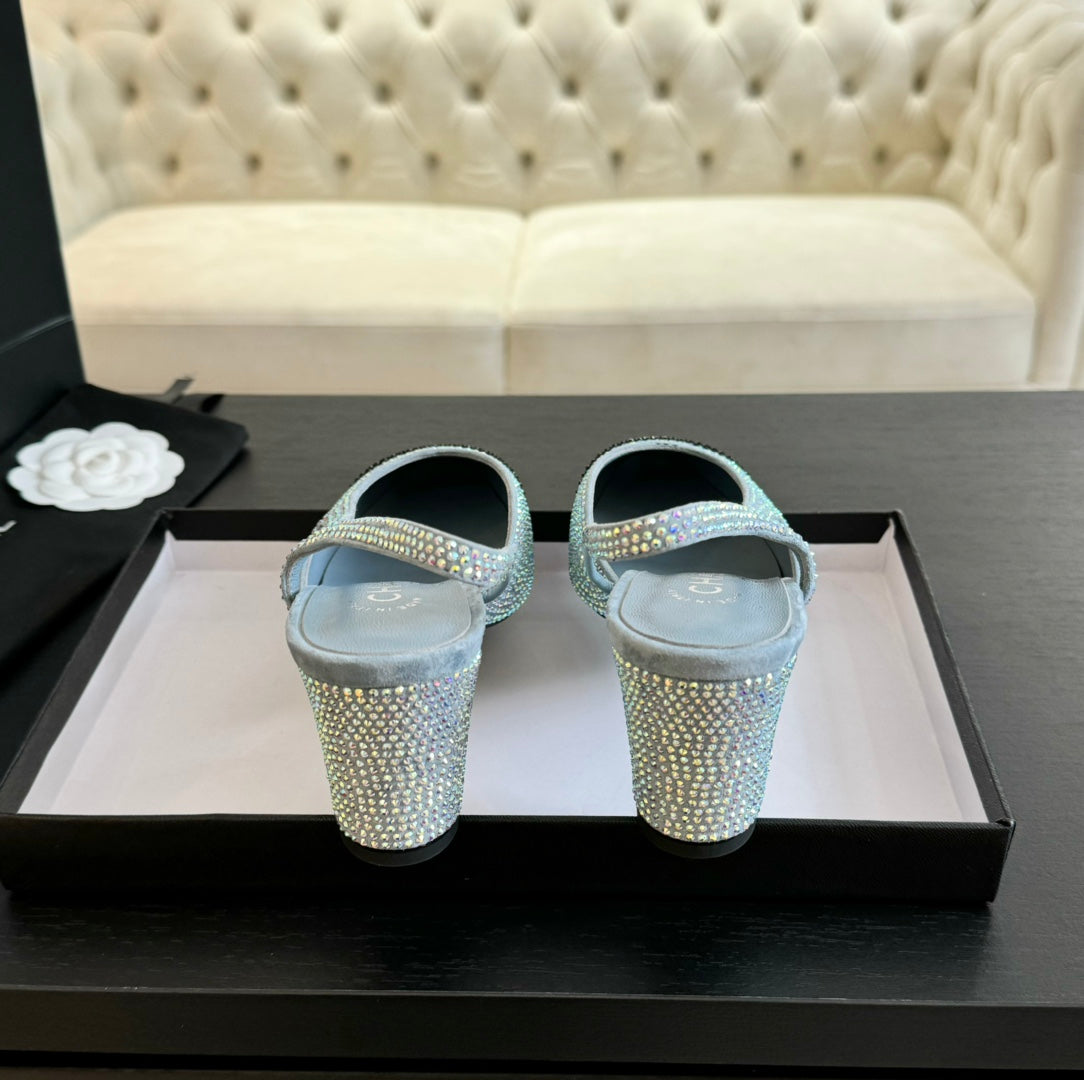 slingbacks 65 blue black calfskin glitter