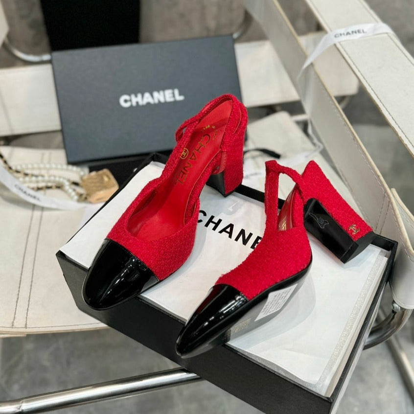 slingbacks 95 red tweed black patent calfskin