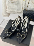 CC High Heels 80mm Black Bow Quilted Calfskin