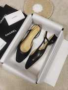 CC Slingback Flat Beige Lambskin Black Grosgrain Lambskin
