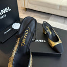 slingbacks 65 black calfskin grosgrain gold sequin