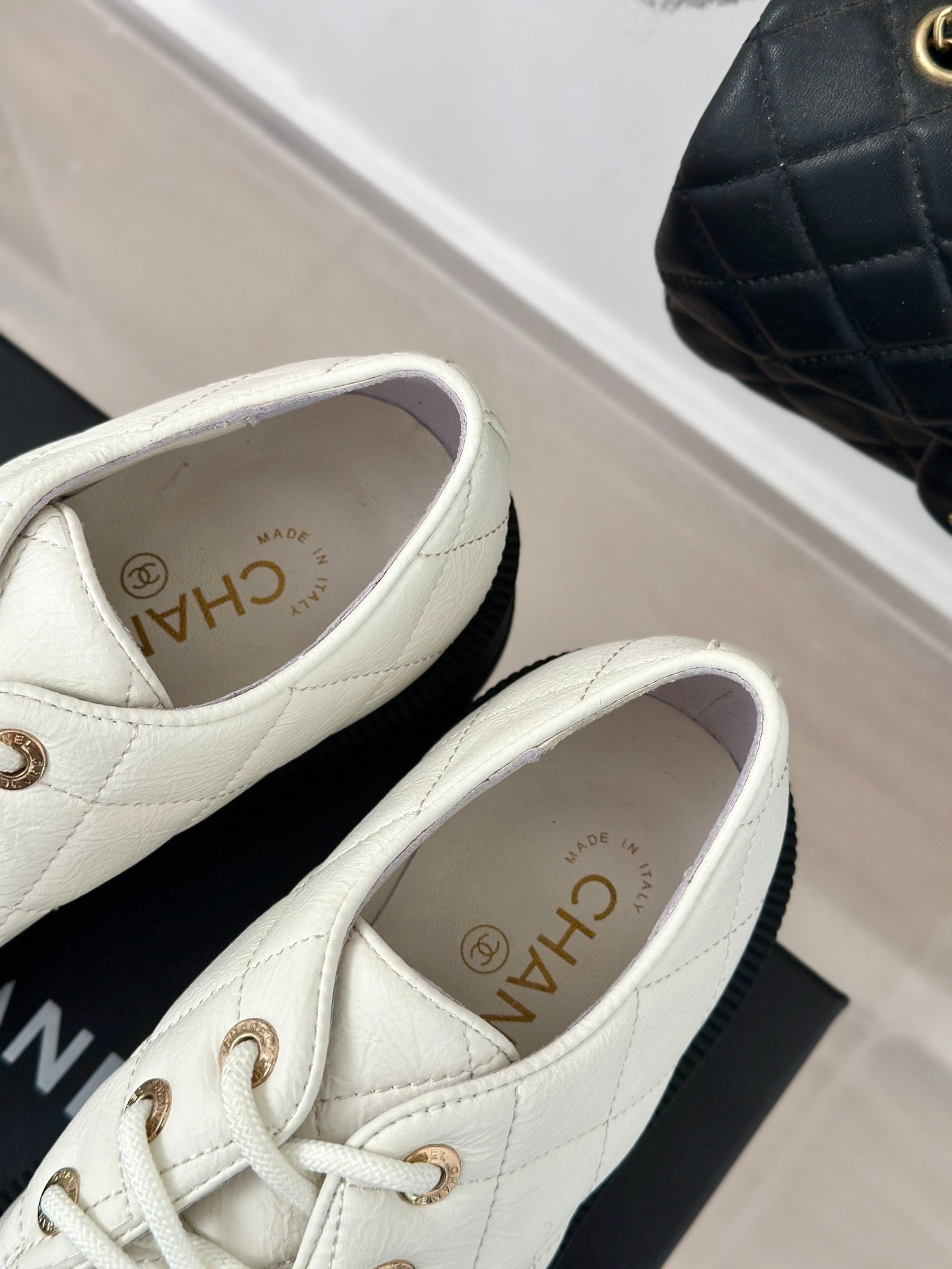 CC Classic Sneaker 50mm White Quilted Wrinkled Calfskin