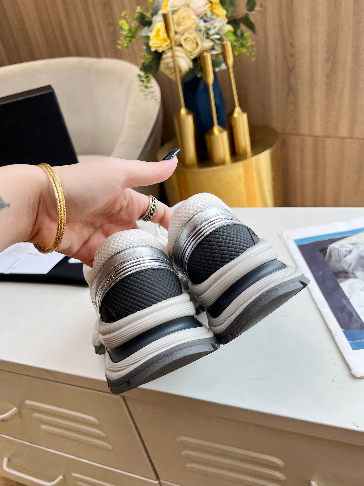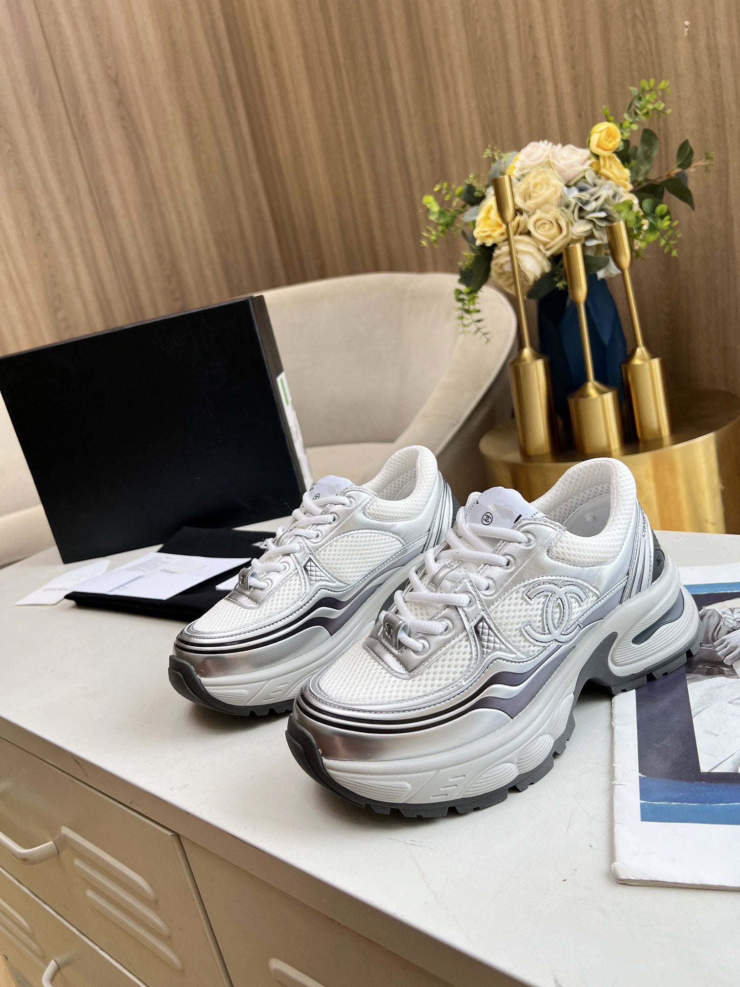 cc trainer black calfskin white mesh