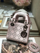 LADY 24 HANDBAG EMBOSSED DIAMOND IN SILVER CALFSKIN