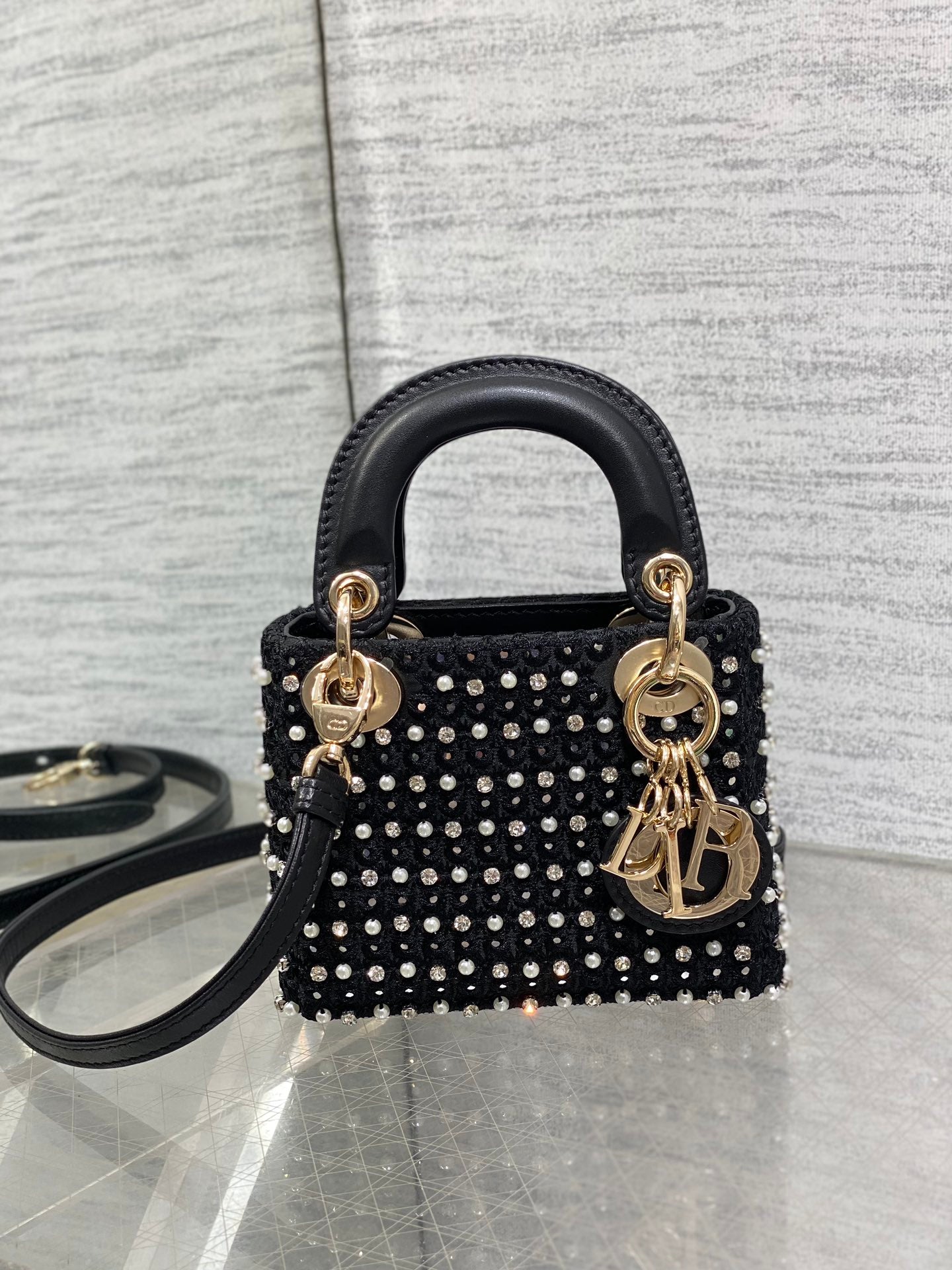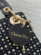 Lady Micro Bag 10cm Black Fabric Embelished With Crystal/ Pearl
