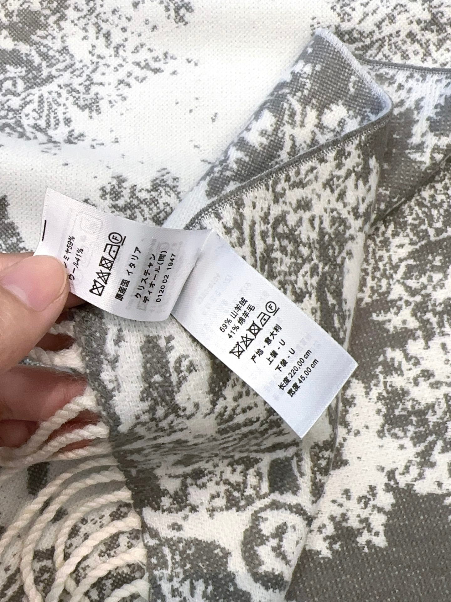 SCARF 220 CM IN WHITE MIX LIGHT GRAY MONOGRAM CASHMERE AND WOOL 413657