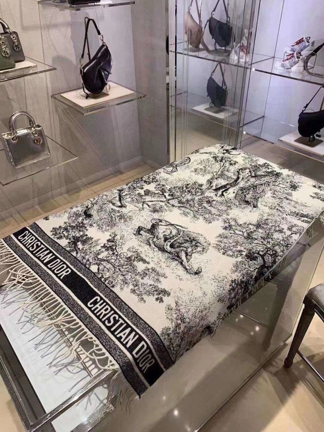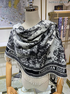 SQUARE SCARF 140 CM IN BLACK MIX WHITE MONOGRAM CASHMERE AND WOOL 416918