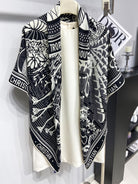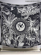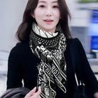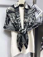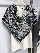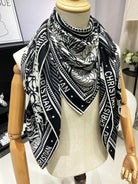 SQUARE SCARF 140 CM IN BLACK MIX WHITE MONOGRAM WOOL AND SILK 415109