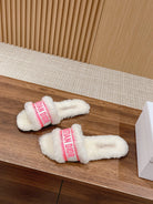 CD Dway Slide White Pink Fleece Lining And Canvas Fabric