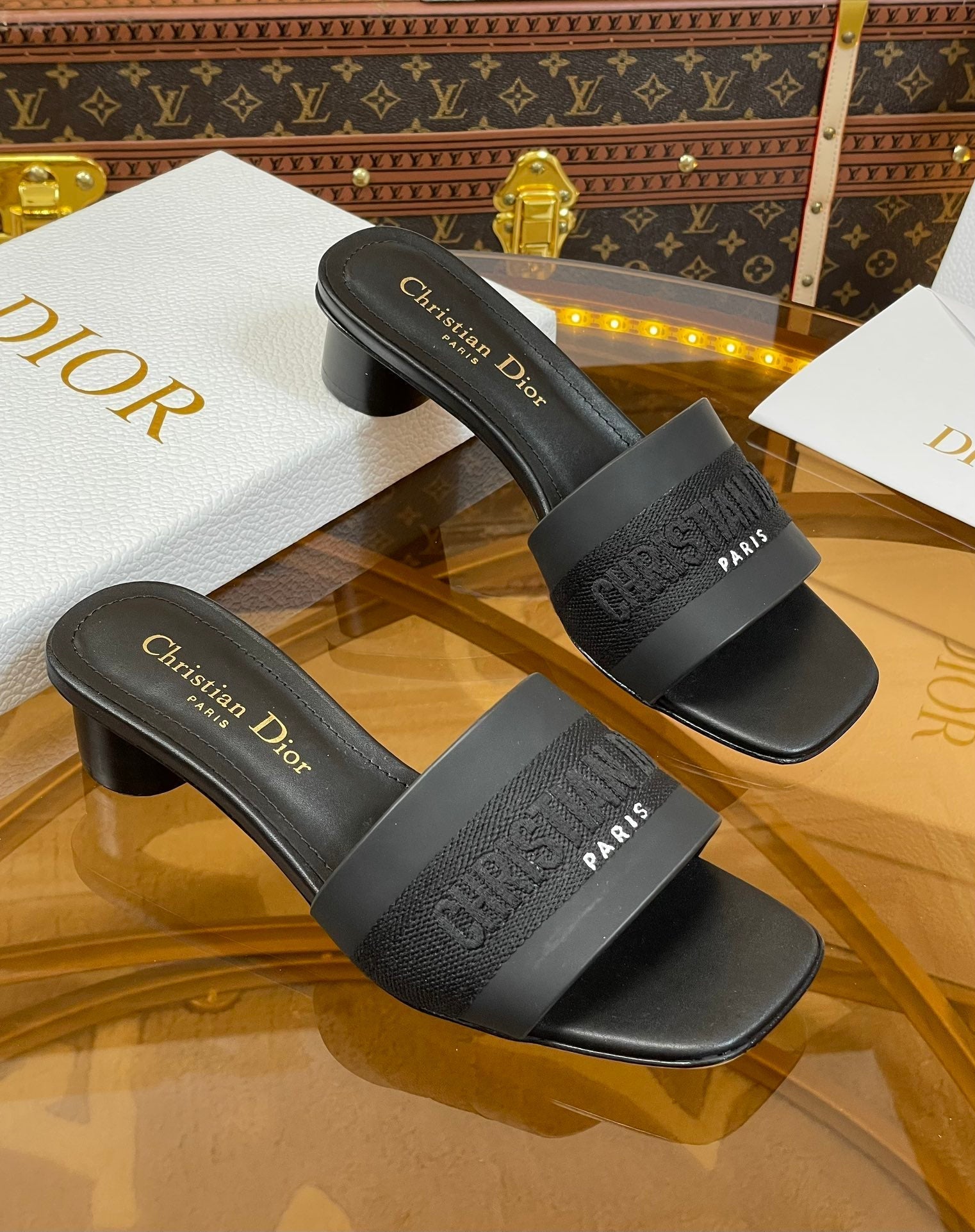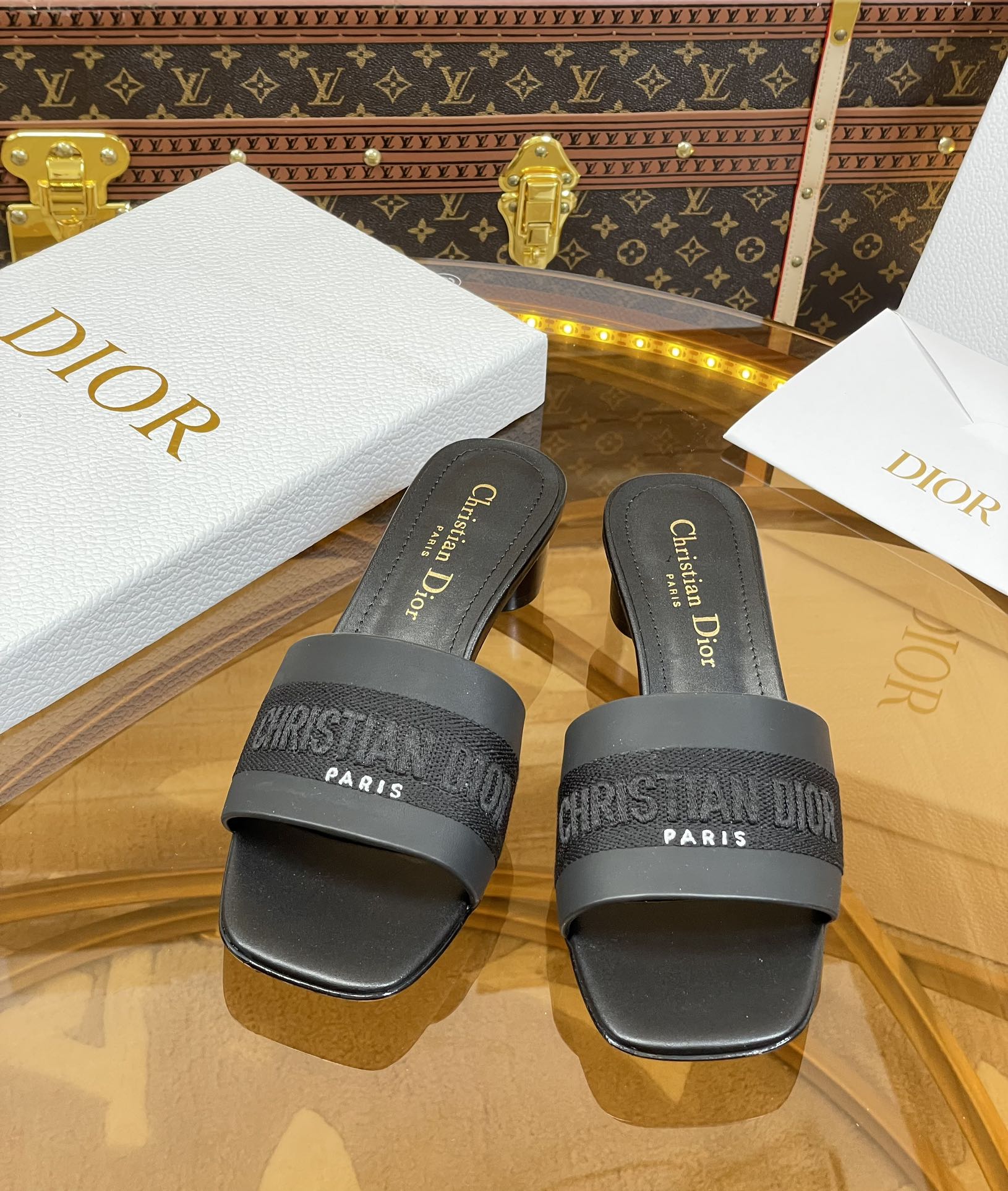 cd slide 45 black calfskin embroidered cotton