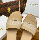 cd slide beige calfskin embroidered cotton
