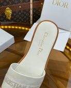 cd slide white calfskin embroidered cotton