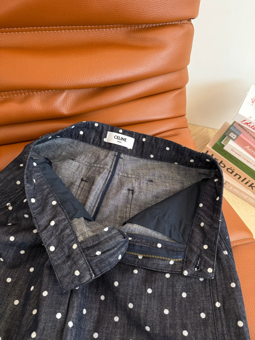 Celine 25 Polka-dot Pants Navy Blue Cotton