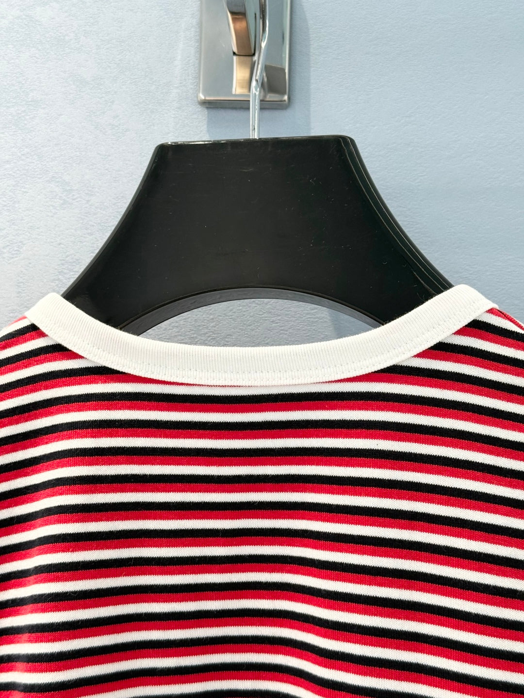 Celine 25 Striped Short-sleeved T-shirt Red White mix Black cotton