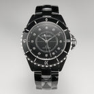 J12 Date Automatic Black Ceramic Diamond Numerals Black Dial Black Steel Hands