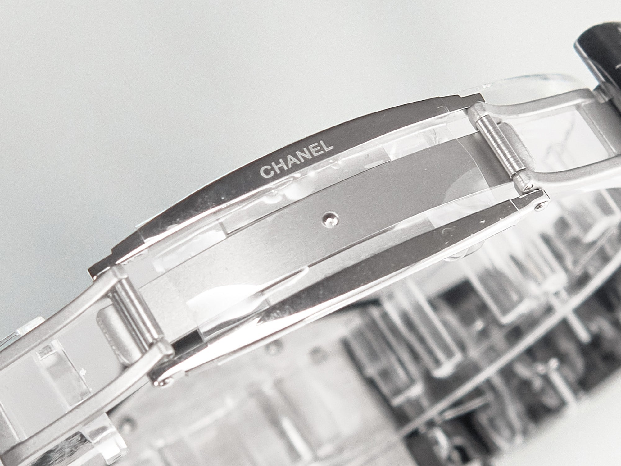 J12 Date Automatic Black Ceramic Diamond Numerals Black Dial White Steel Hands