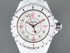 J12 Quartz White Ceramic Pink Diamond Numerals White Dial