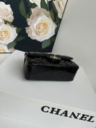 24c mini flap bag 20cm with top handle black patent calfskin