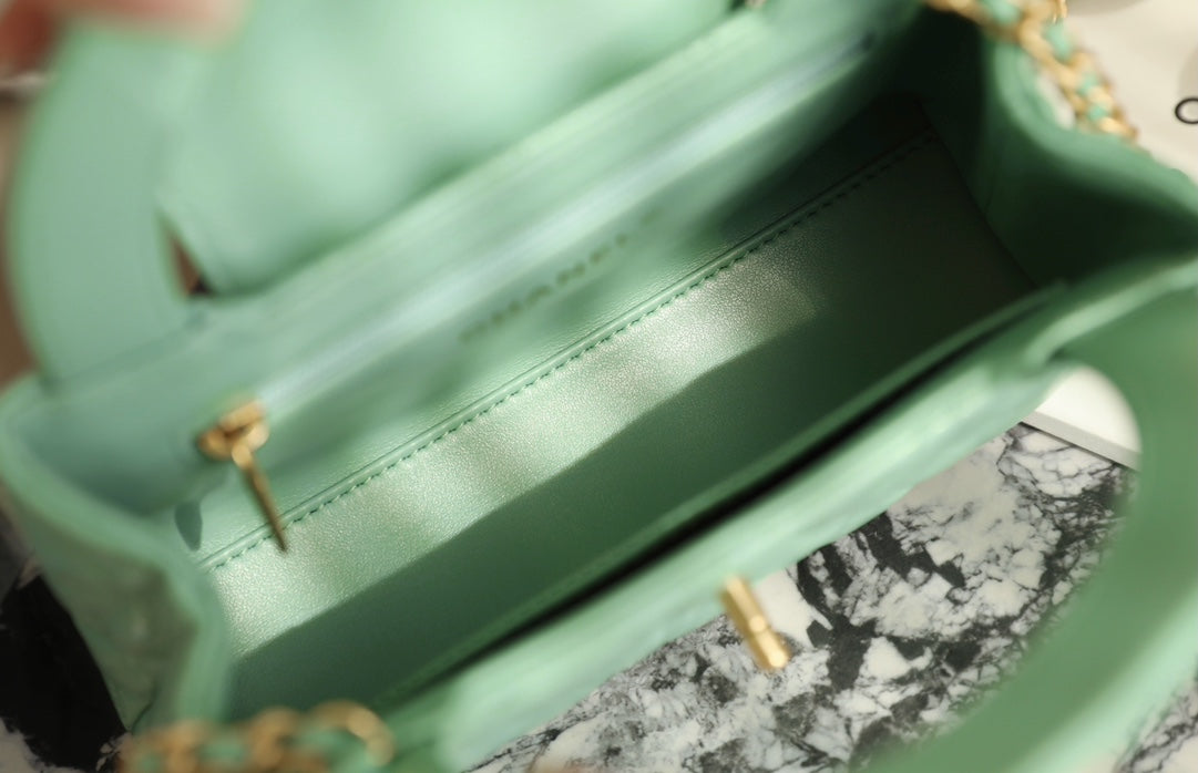 CC 24K Nano 19cm Kelly Shopper Bag Cloud Blue Patent Lambskin