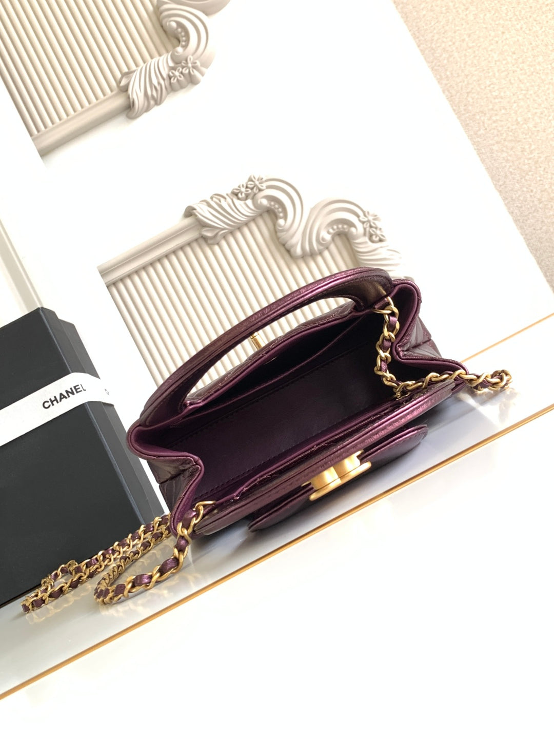 cc 24a nano 19cm kelly shopper bag burgundy metallic lambskin