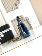 cc 24a nano 19cm kelly shopper bag metallic blue lambskin