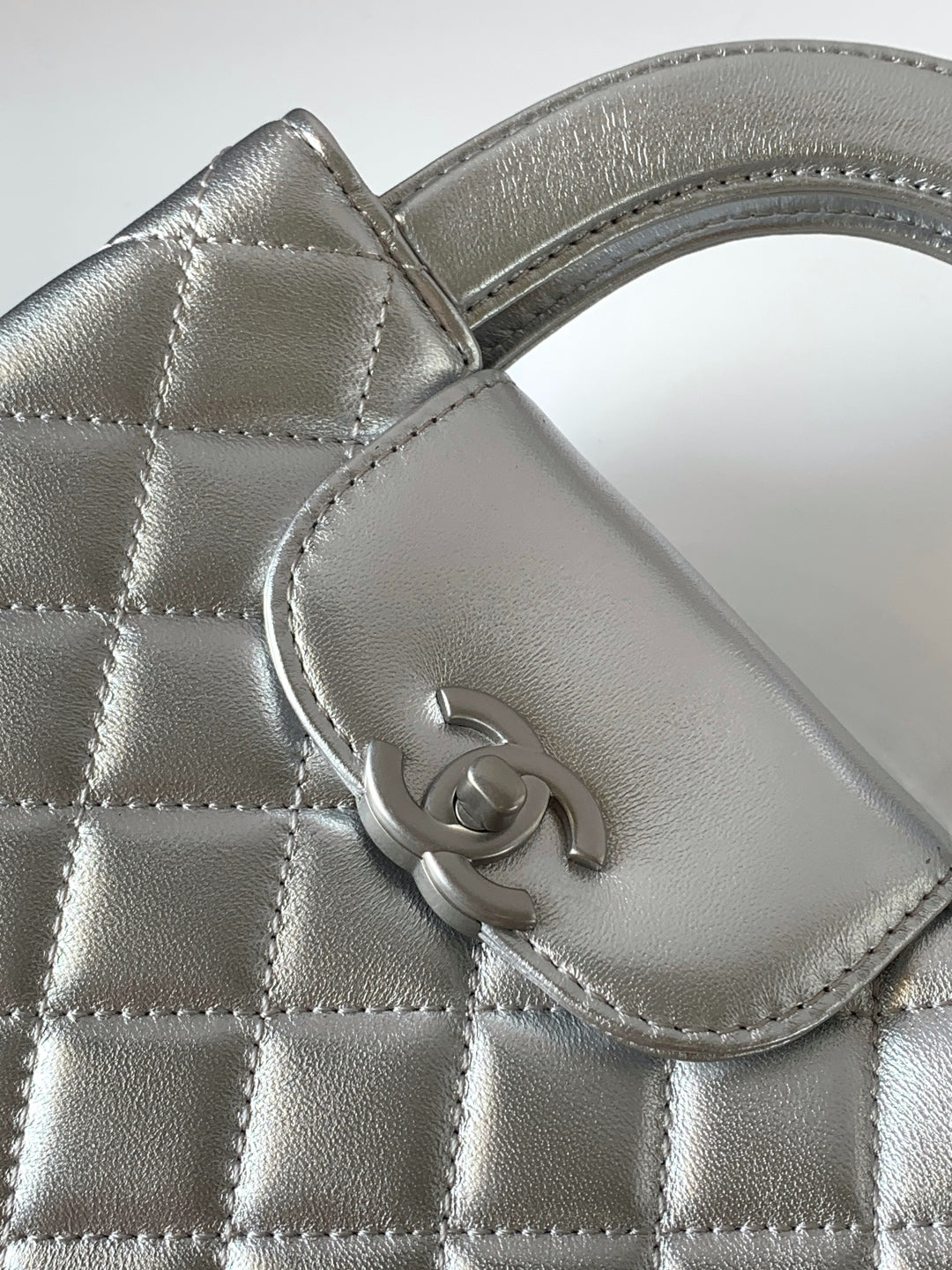 cc 24a nano 19cm kelly shopper bag sliver metallic lambskin
