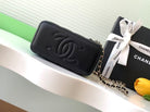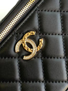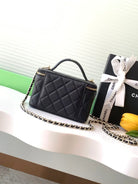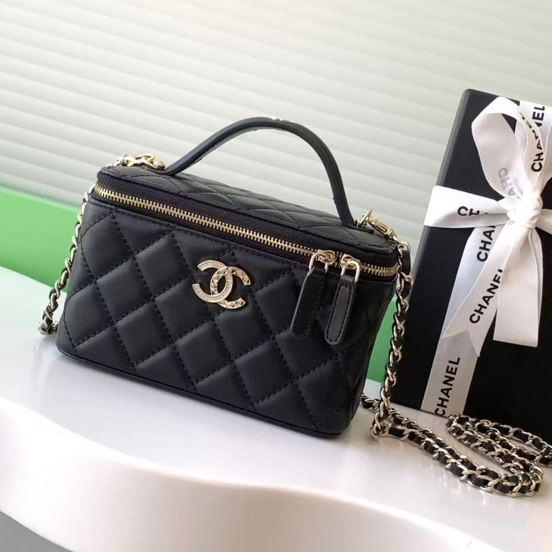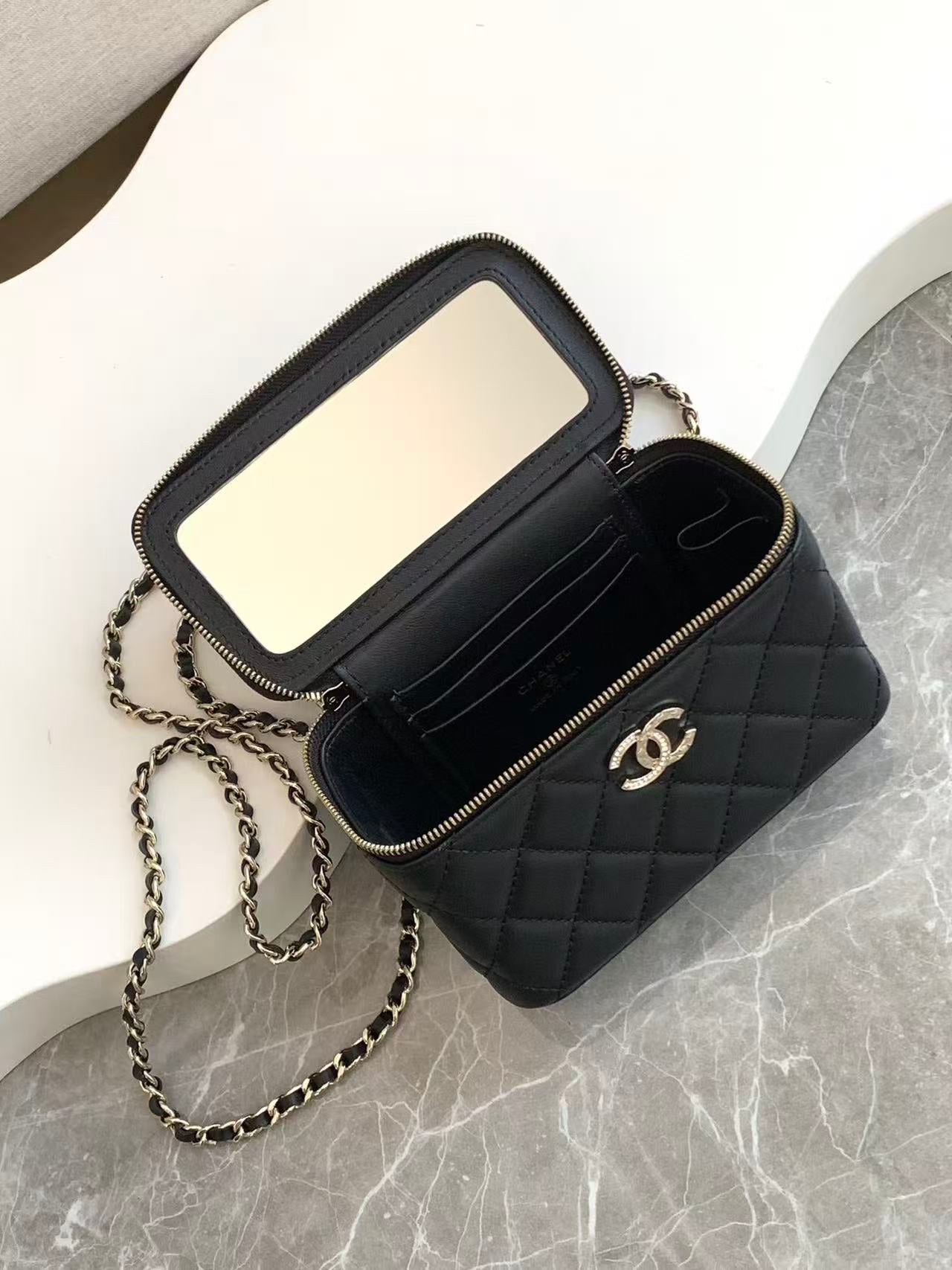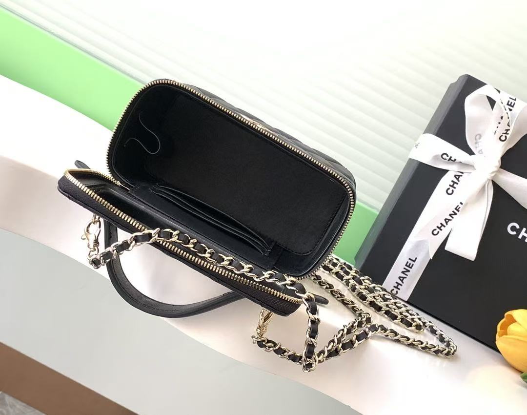 CC 25C Vanity Top Handle 17cm Black Grained Calfskin Gold Hardware