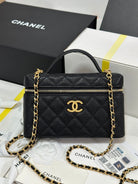 CC 25P Vanity Case 19.5cm Black Calfskin Gold Hardware 243586
