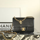 CC Caviar Flap Bag 17.5 Gold Logo Black Calfskin