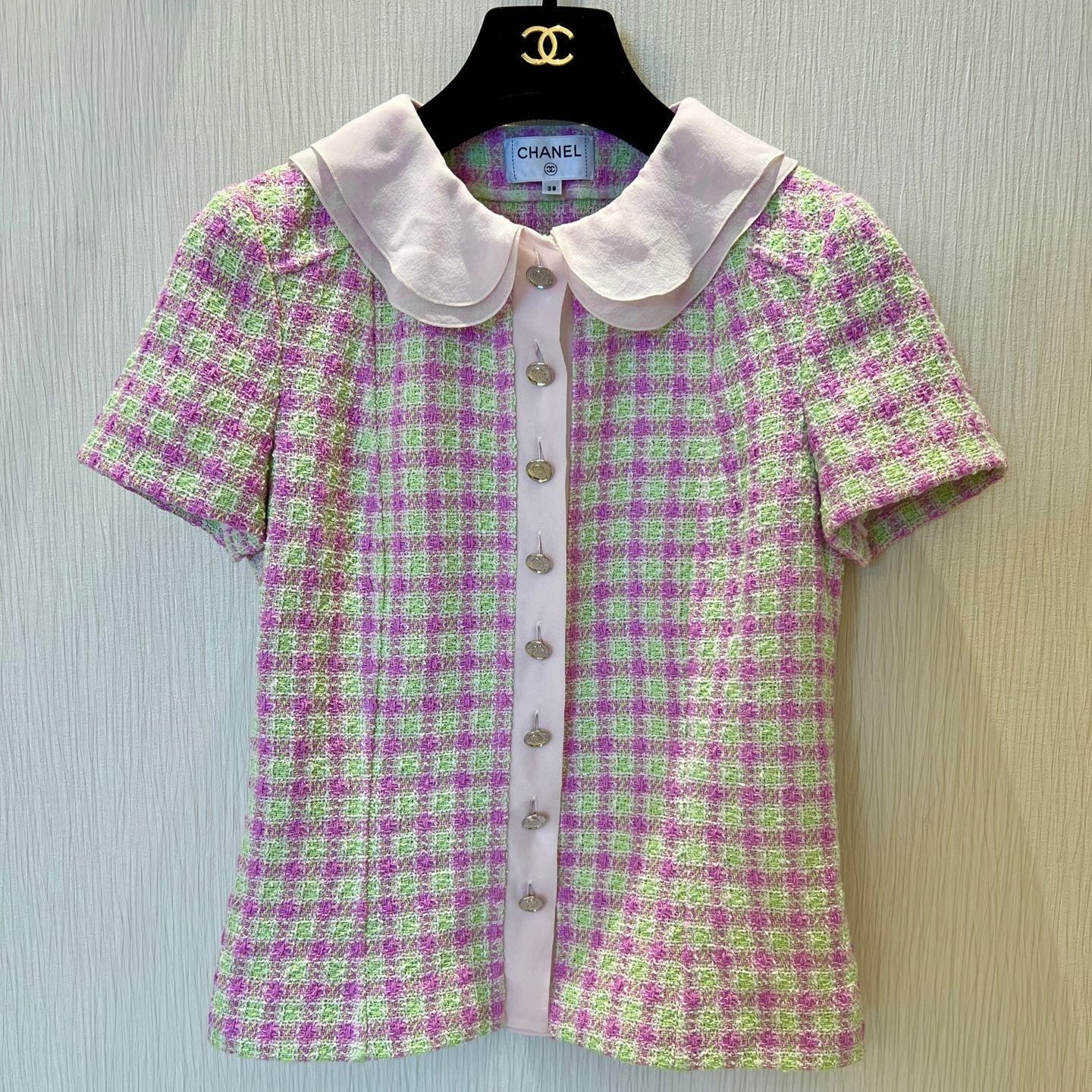 CC 25 Doll Collar Top Pink Green Tweed Fabric