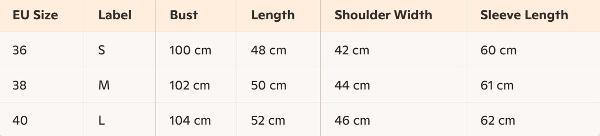- For more information, please see the size guide below