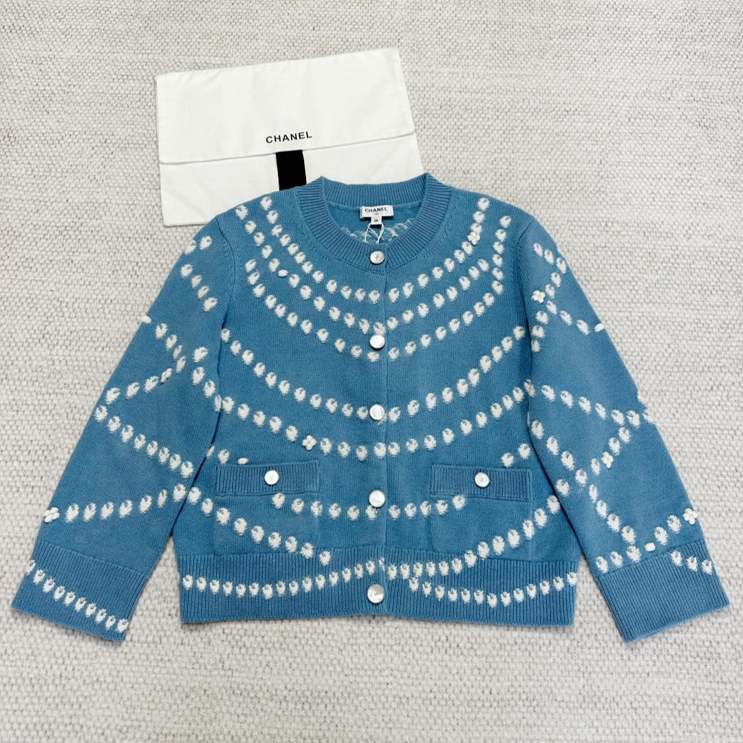 CC 25 Pearls Cardigan Blue Cashmere