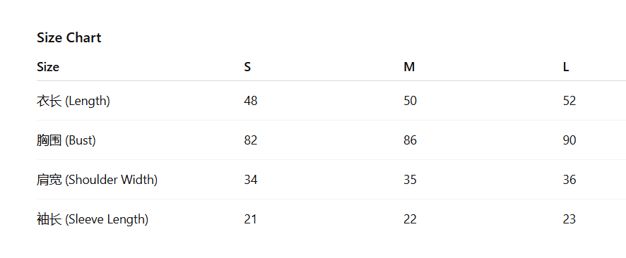 - Size : S, M, L