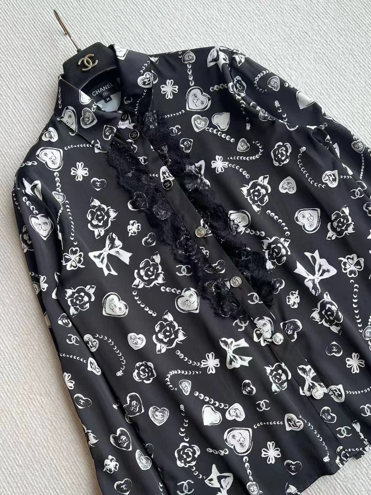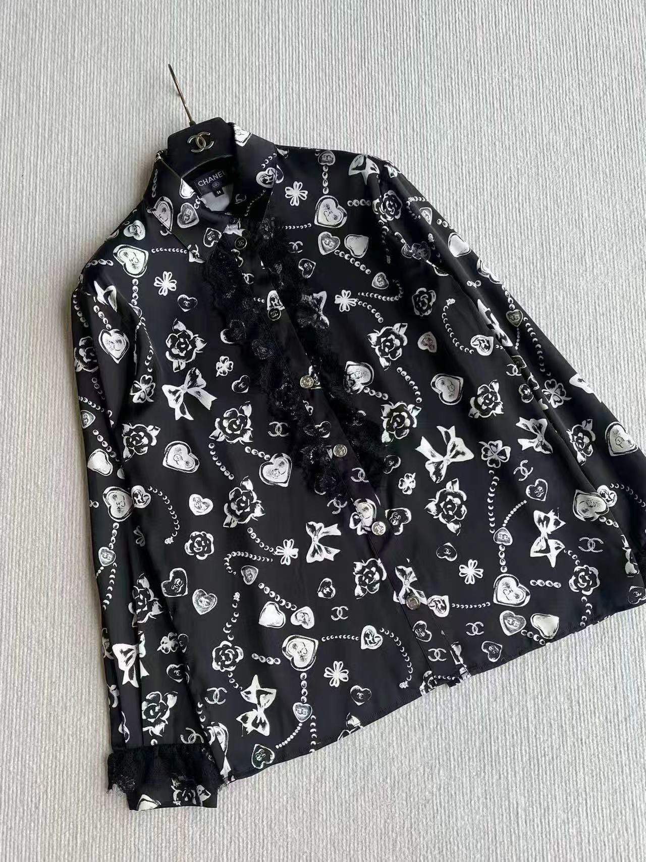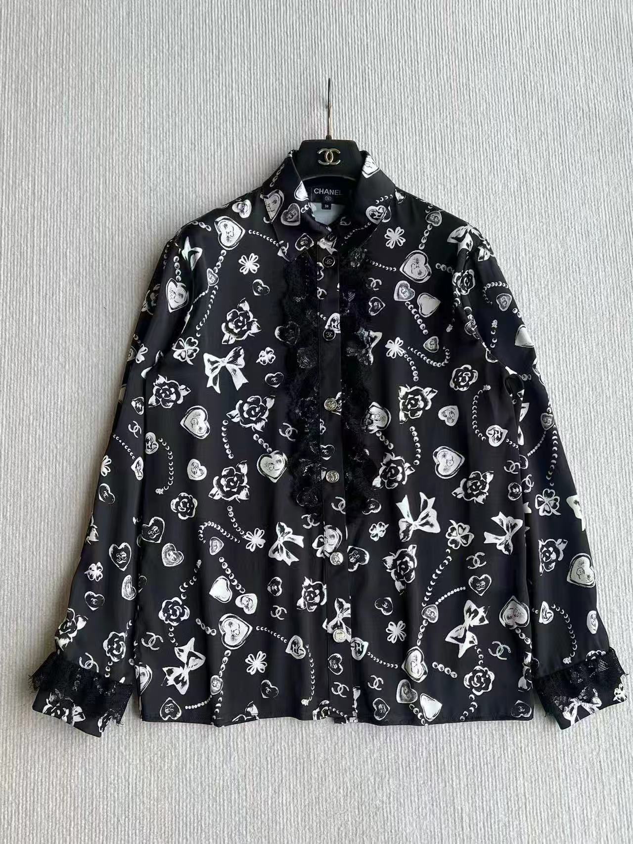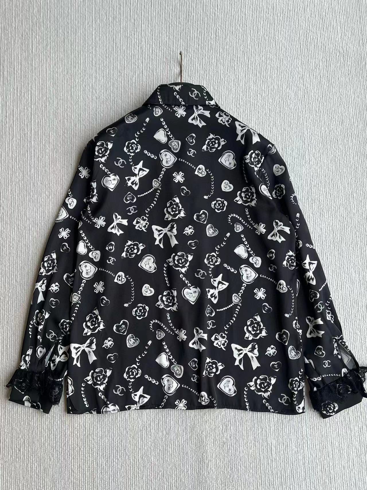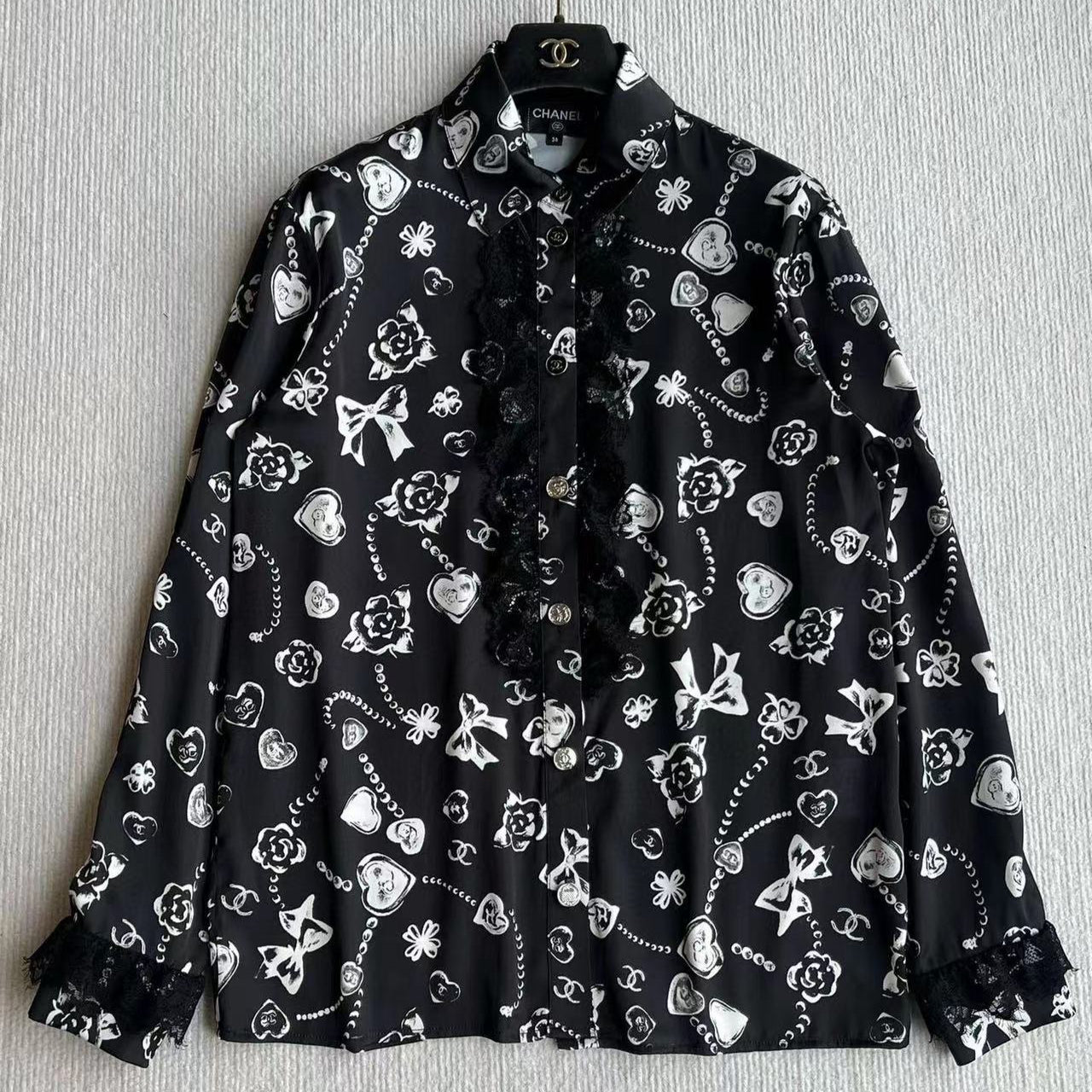 CC Long Sleeve Shirt Black mix White Polyester Silk