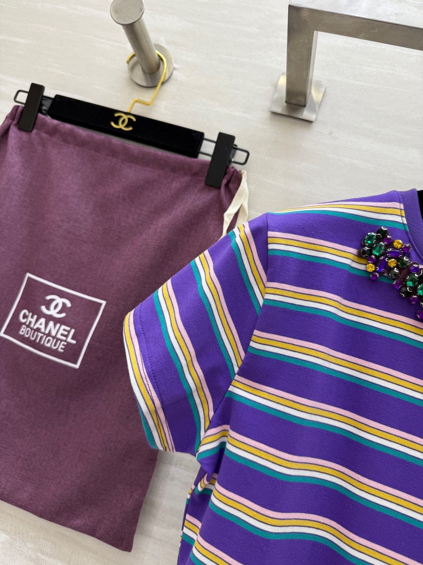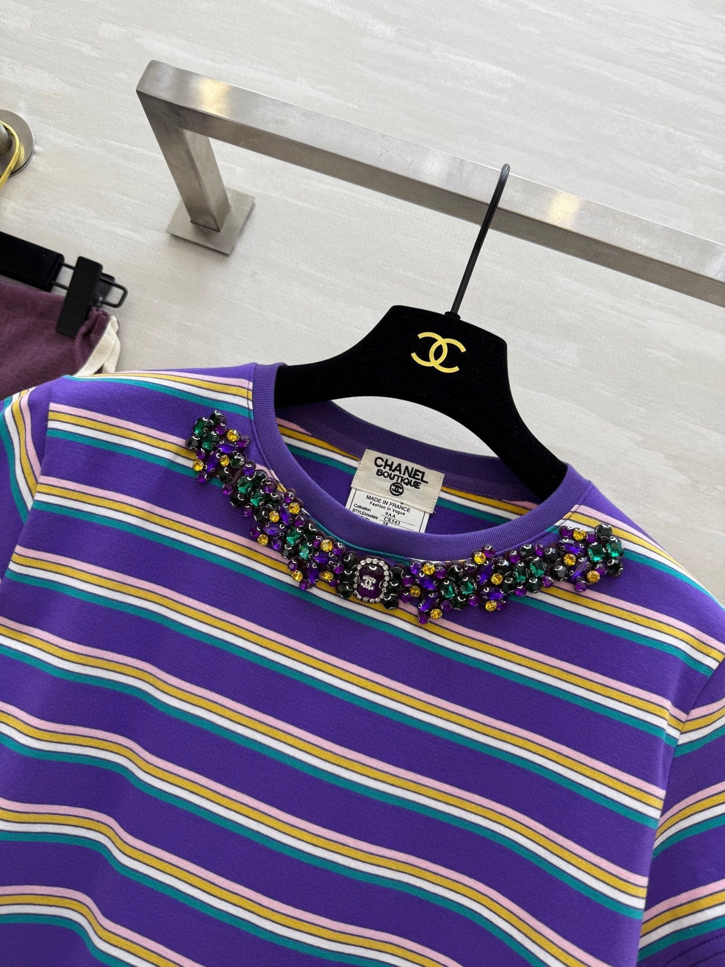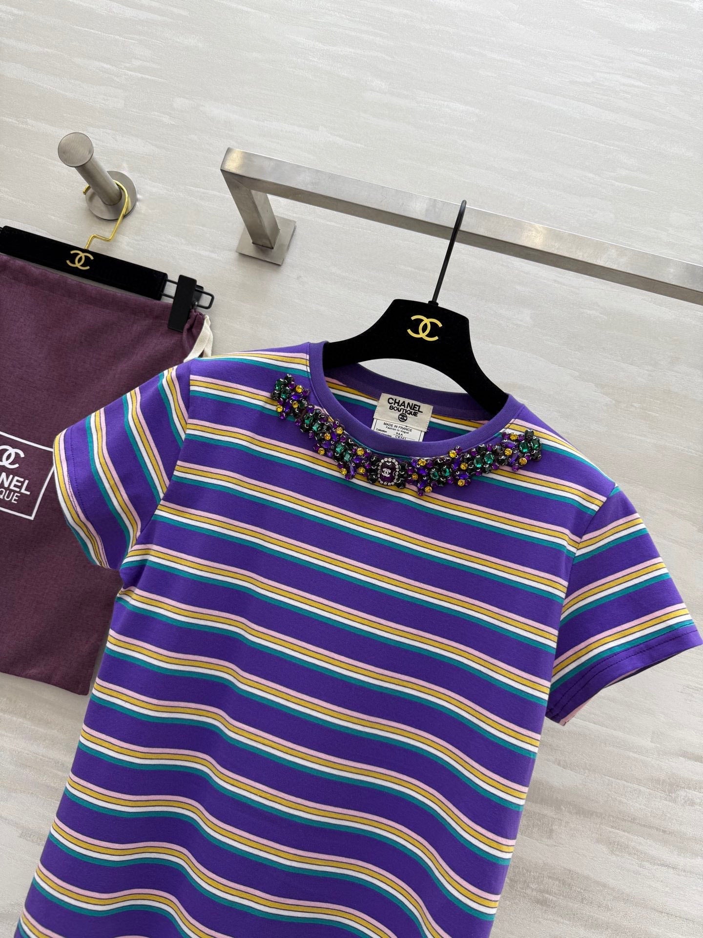 CC Strip Beaded T-shirt Purple Cotton