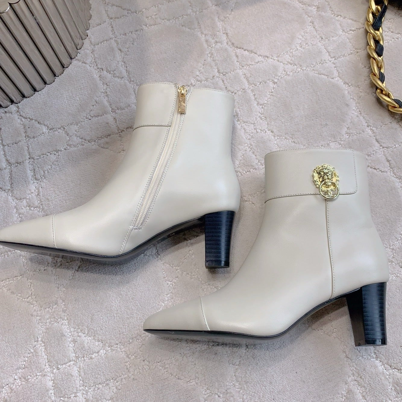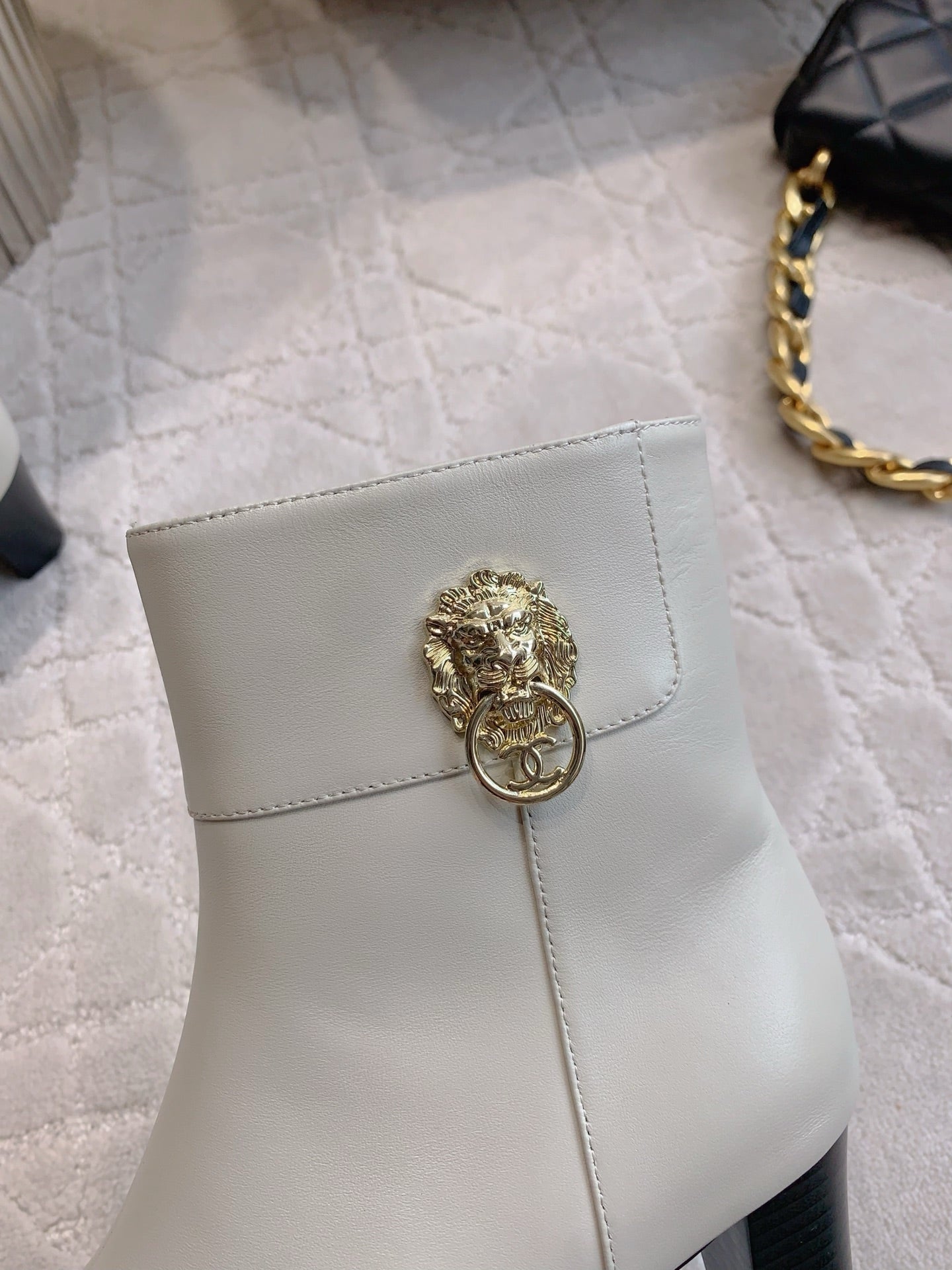 CC 25 Chunky High-heeled Ankle Boots White Calfskin 516658